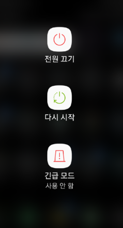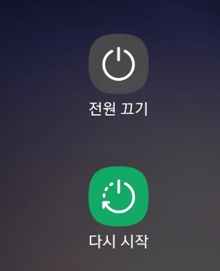▶ 볼륨 + 버튼 → 볼륨 – 버튼 → 전원 버튼 길게 눌러 강제 재부팅