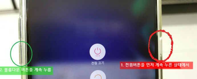▶ 전원 버튼 + 볼륨 다운 버튼 7초간 길게 누르기