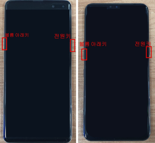 ▶ 전원 버튼 10초 이상 누르거나 전원 + 볼륨 다운