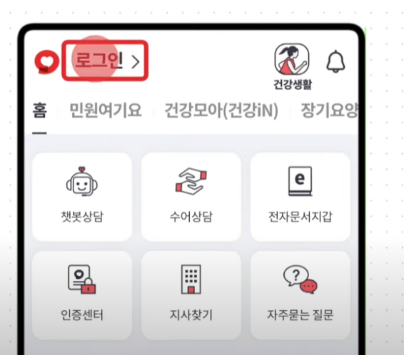 ④ 로그인 수단 중 ‘건강보험 인증서’ 선택