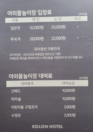 - 물놀이용 장비는 개인 지참 권장, 대여는 별도 비용 있음