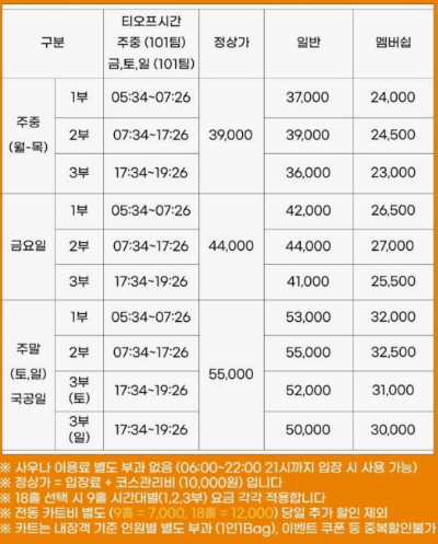 - 투숙객: 대인 28,000원 / 소인 22,000원