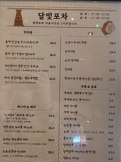 - 1인 이용료: 14,900원 (2시간 생맥주·막걸리 무제한 제공, 안주 주문 필수)