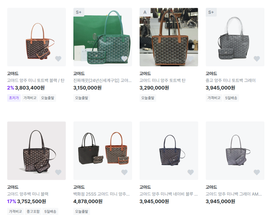 컬러별 고야드 미니 앙주 국내 시세 (2025년 기준)