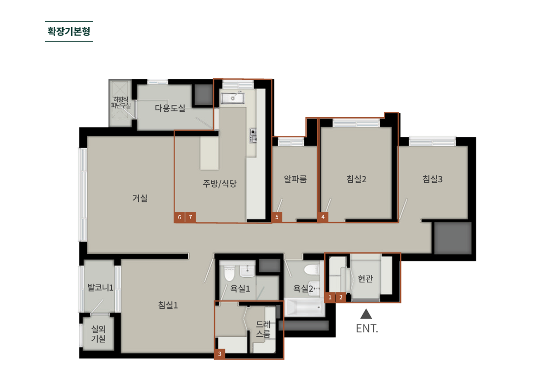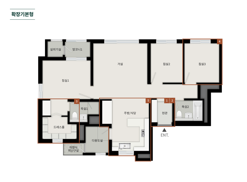 - 대형 거실 및 팬트리, 드레스룸 구성