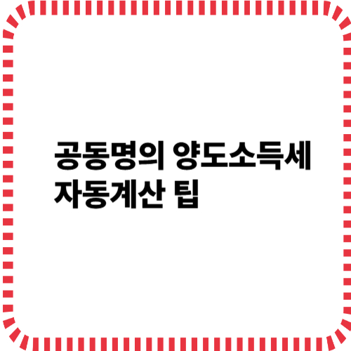 공동명의 양도소득세 자동계산 팁: 절세 가능한 조합은?