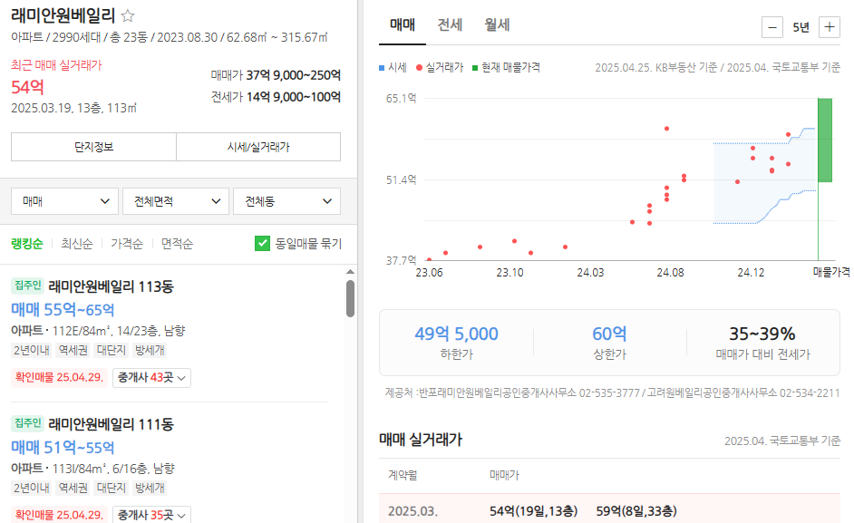 • 전용 113㎡ 기준 최근 실거래가: 54억 (2025.03 기준)
