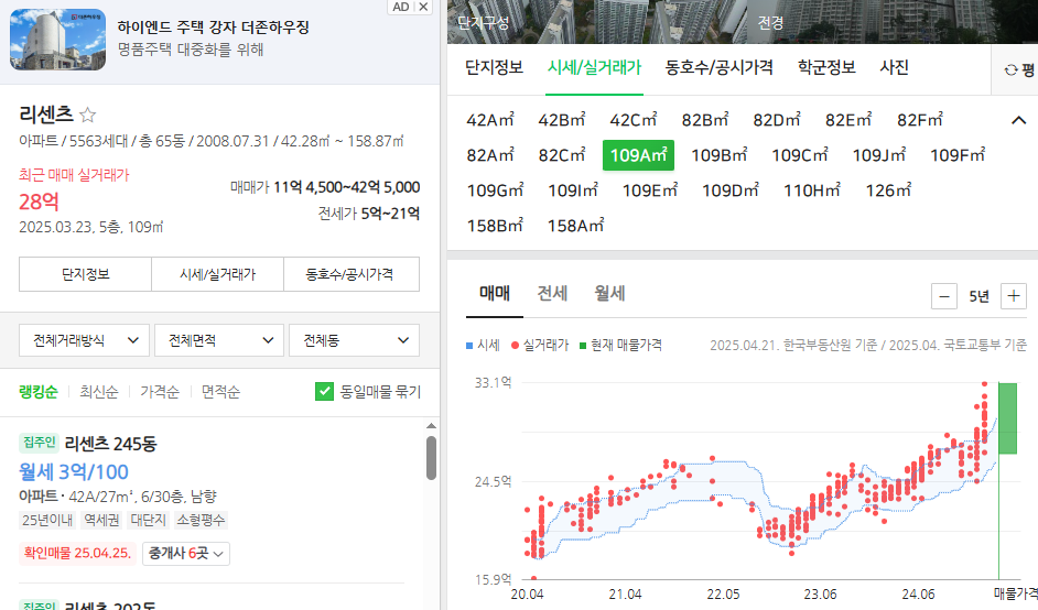 - 전용 109㎡ 기준 실거래가: 28억 (2025.03 기준)