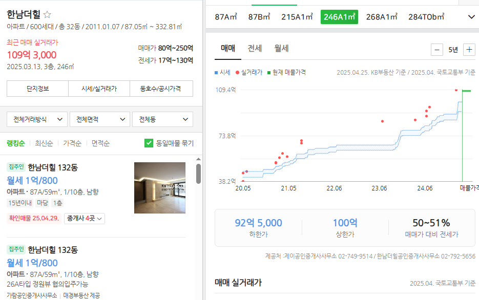 - 전용 113㎡ 기준 최근 실거래가: 54억 (2025.03 기준)