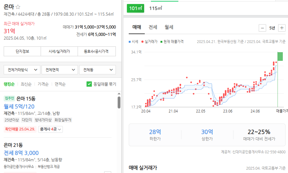 - 전용 115㎡ 기준 실거래가: 31억 (2025.04 기준)