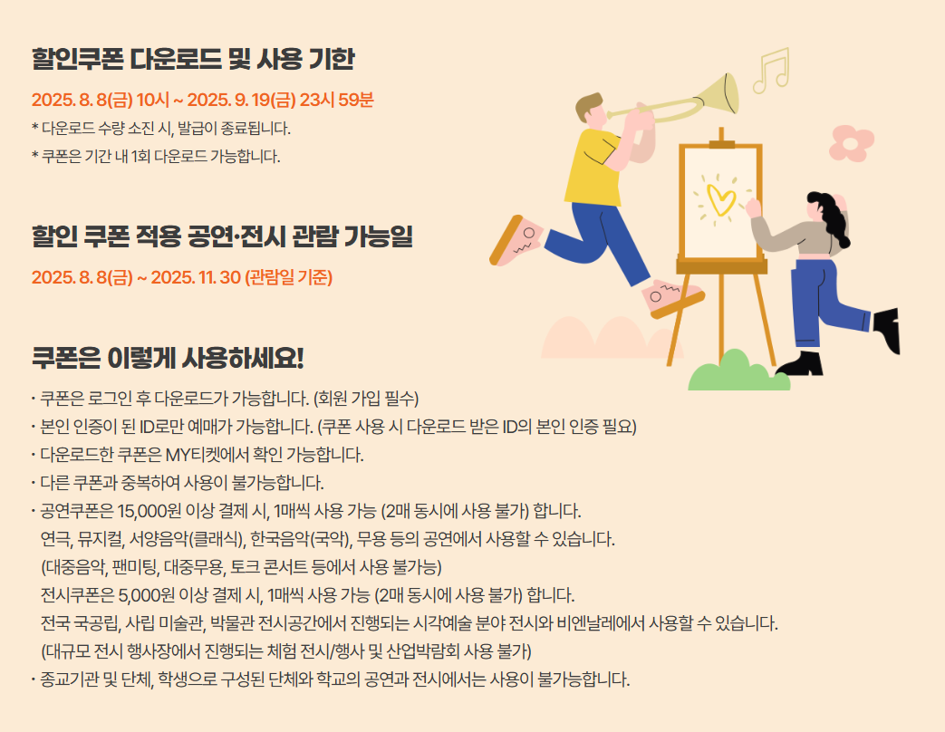 • 할인권은 2025년 11월 30일 이내 관람 예정 공연·전시에만 적용 가능