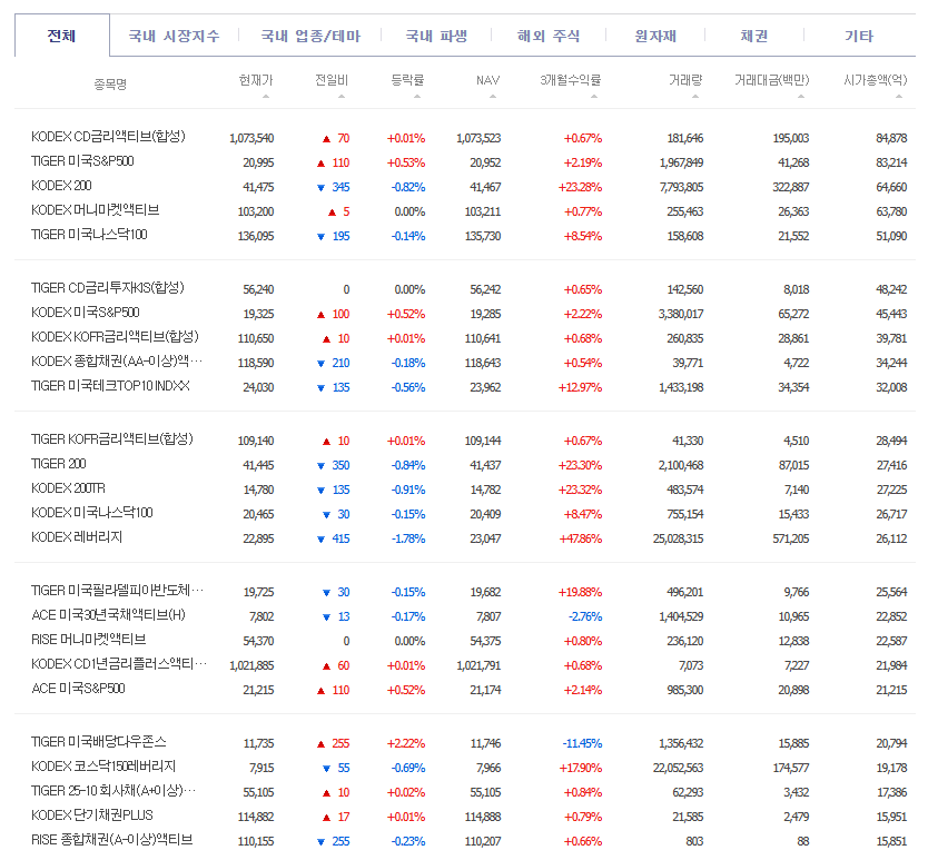 | 순위 | 종목코드 | ETF 명칭 | 핵심 지표 |