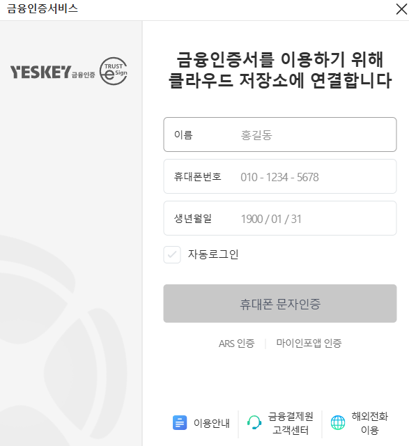 3. 간편인증 등으로 로그인합니다.