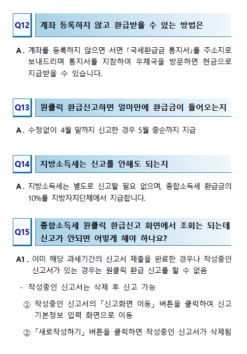 • 신청 방법: 홈택스(www.hometax.go.kr) 접속 후 '원클릭 환급 신고' 버튼 클릭