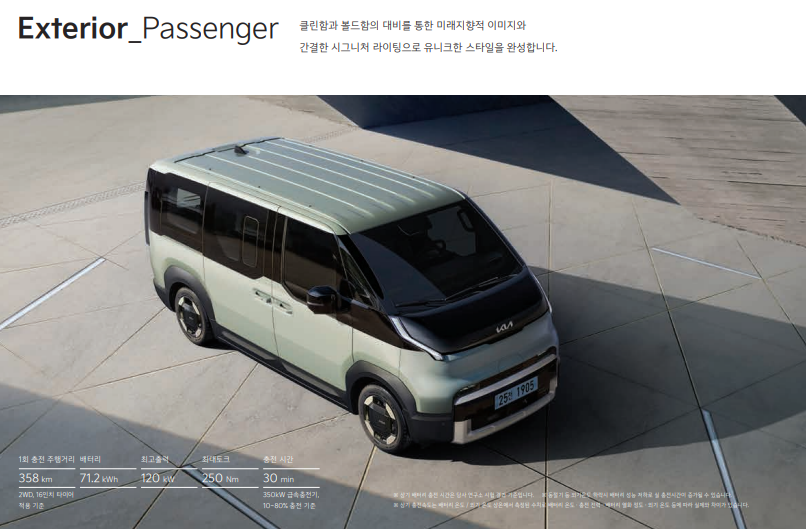 이미 ‘패 신저’ 리뷰나 실물 공개는 마쳤고, 현대차그룹 내에서도 스타리아 EV, 현대 ST1과의 비교를 위해 집중 홍보 중이에요.