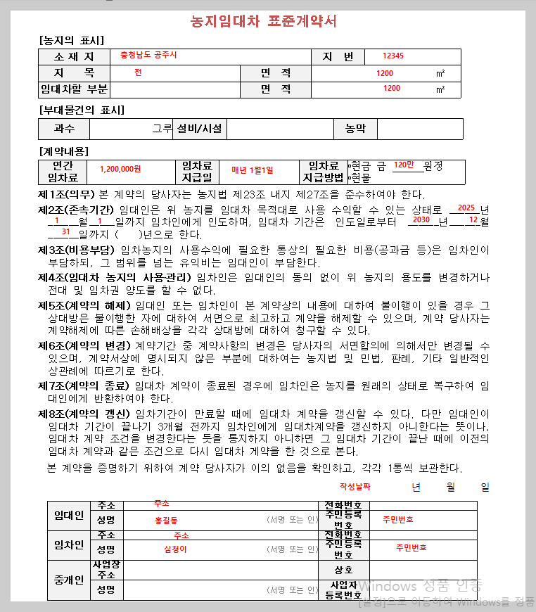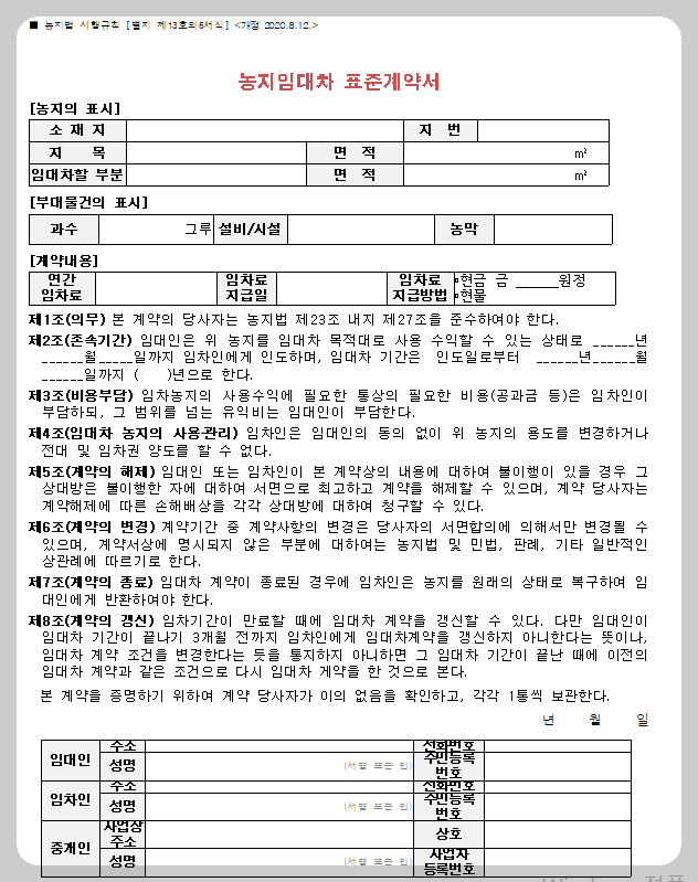 농지 임대차 계약서 무료양식 (다운로드+작성 예시)