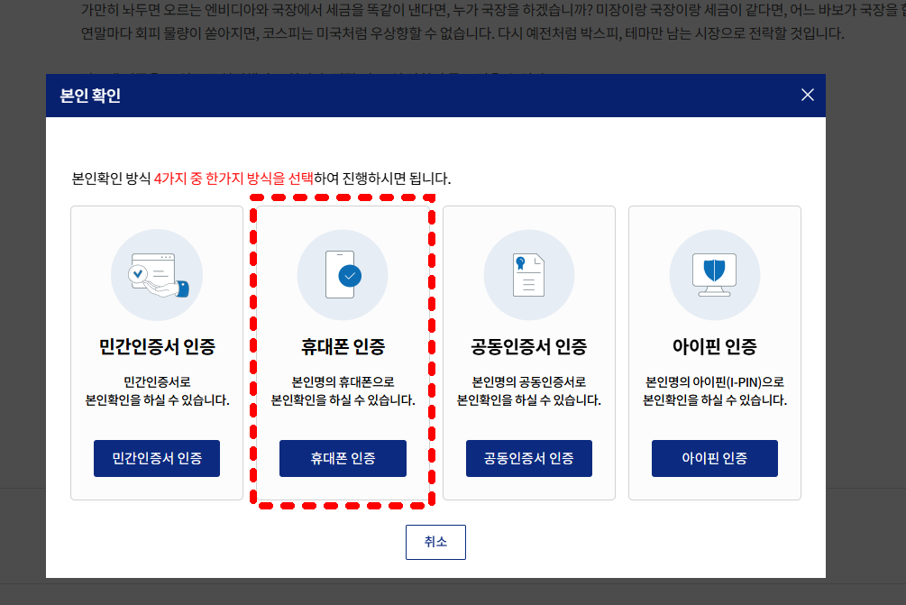 비회원도 본인 인증만 하면 동의 가능하니 부담 없이 참여하세요. - [비회원 인증하기] → '휴대폰 인증', '공동인증서', '아이핀' 등 4가지 방식 중 선택