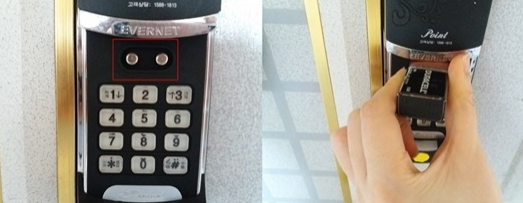 A. 비상 전원 단자에 9V 건전지를 연결하여 임시로 전원을 공급한 후, 비밀번호를 입력하여 문을 열 수 있습니다.