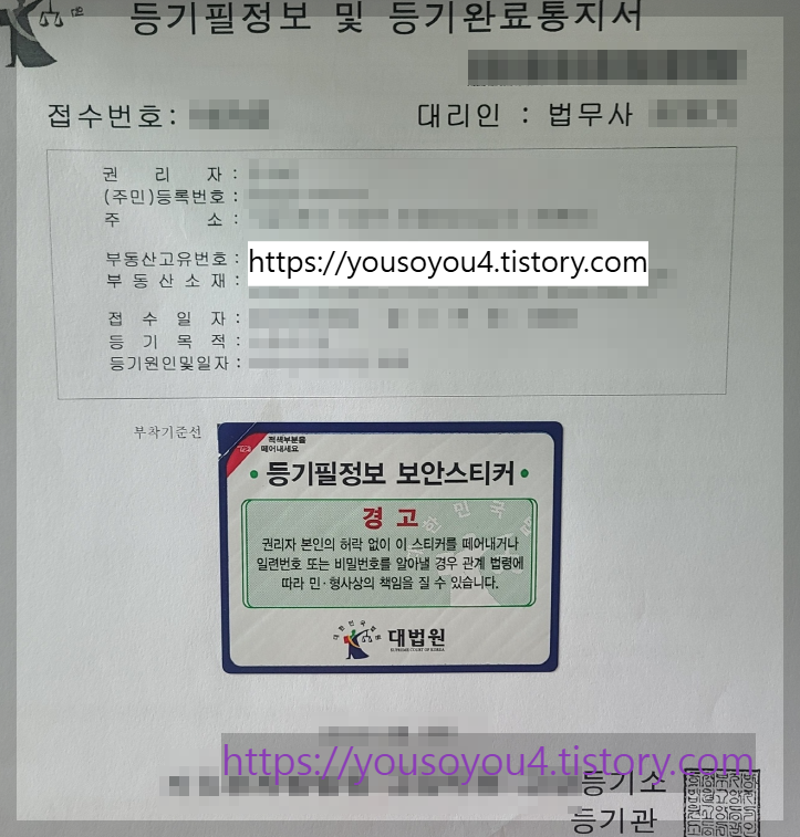 - 서류 안에는 등기필정보라는 고유번호가 들어 있는데, 이는 소유자 확인을 위한 핵심 자료이기도 합니다.