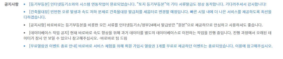 ❌ 바로바로 도 등기부 정보 제공하지 않음
