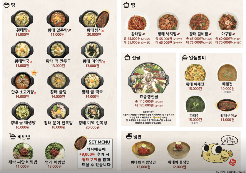 2-2. 명태회냉면, 황태구이 메뉴 구성 소개