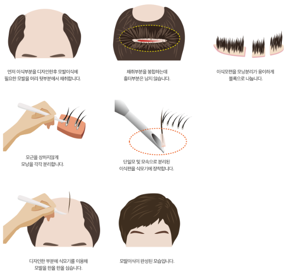 - 탈모 부위에 이식