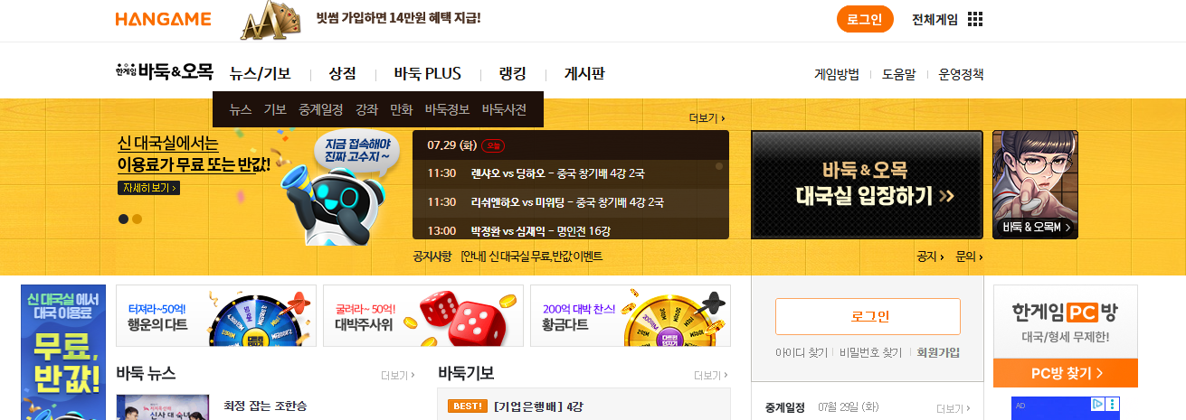 무료로 바둑을 두고 싶은데 설치는 귀찮고 복잡한 회원가입은 피하고 싶다면?