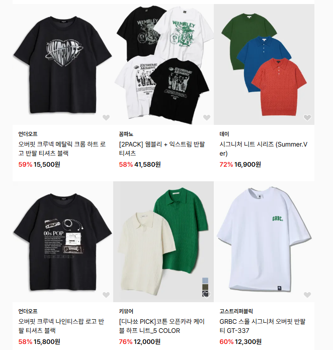 - 무신사 스탠다드 반팔티 1,990원 ~ 14,990원 (90% 이상 할인)