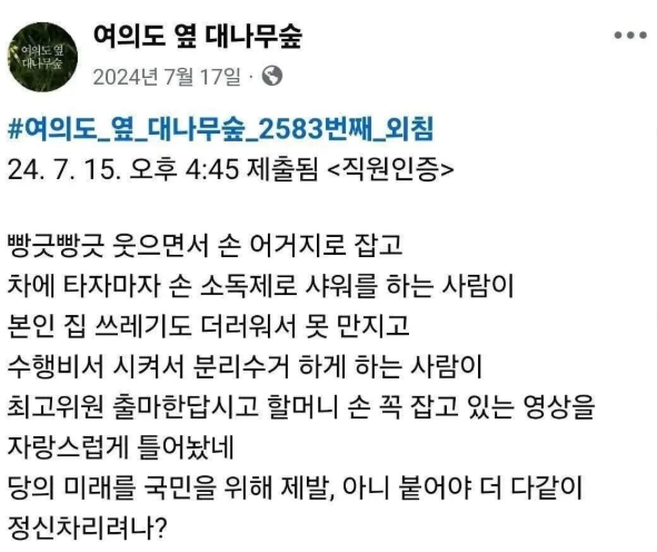 그는 “동지 관계라며 보좌진에게 쓰레기 처리·변기 수리를 지시하는 것이 말이 되느냐”고 지적하며