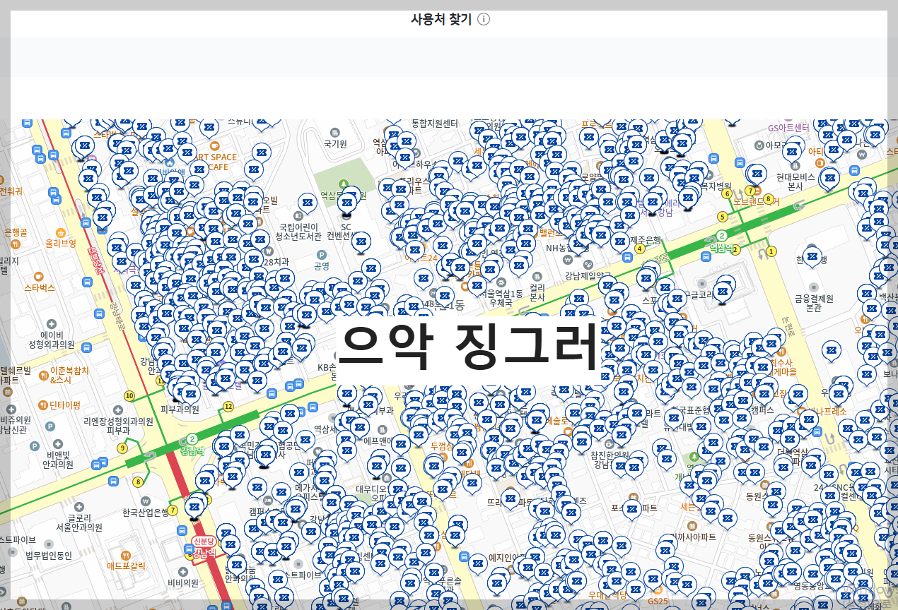 - 가맹점명+상호명까지 지도에 뚜렷하게 보입니다.(이게 가장 장점)