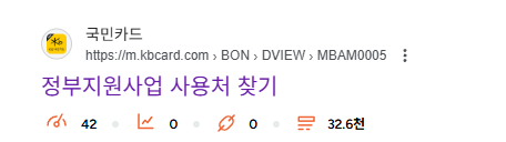 - 네이버나 크롬에서 (국민카드 정부지원사업 사용처찾기) 검색 하거나 아래 링크 클릭