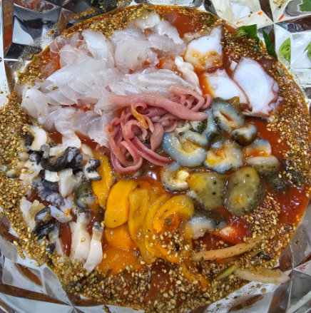 신선한 회를 고추장 대신 초고추장과 함께 부드럽게 즐기며 바다의 풍미를 제대로 느낄 수 있는 맛