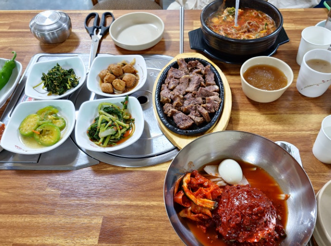 - 추천 메뉴 : 회냉면+접시갈비, 메기구이+나물밥, 발칸포 부대찌개, 더덕비빔밥, 고등어구이백반