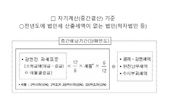 - (출처: 국세청 홈페이지 '법인세 중간예납 계산방법’ 표준 안내)