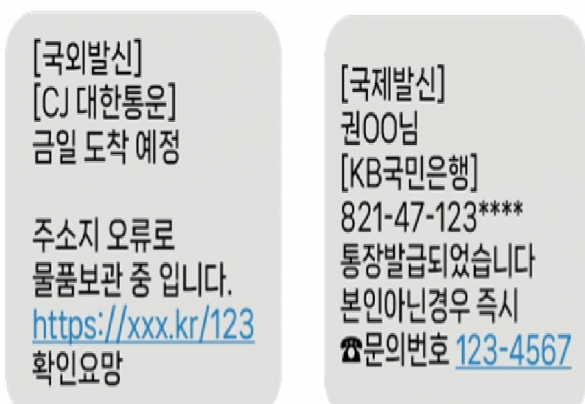 특히 정부기관 사칭 문자, 택배 문자, 카카오 알림톡 위장 링크 등은
