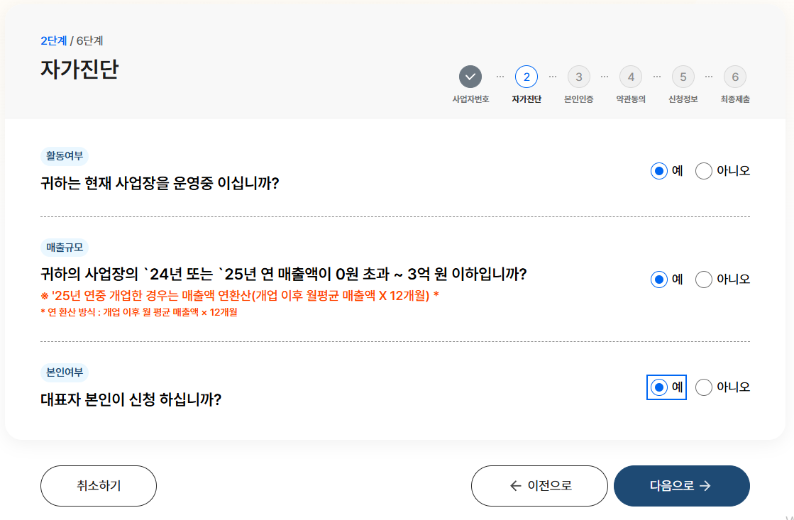 - 신청일 기준으로 휴업 또는 폐업 상태가 아닌 사업자