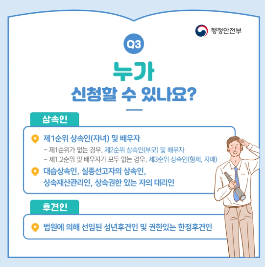 • 직계 가족(배우자, 자녀, 부모 등)이 신고인 자격을 가집니다.