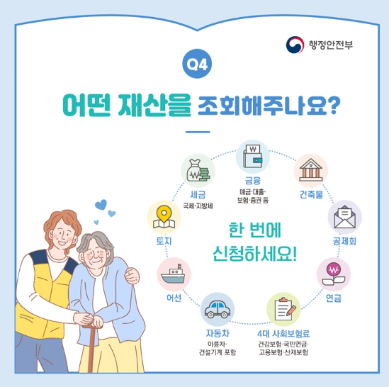 금융재산·토지·자동차·국세·지방세·연금 등 주요 기관에 일괄 조회 요청이 들어갑니다.