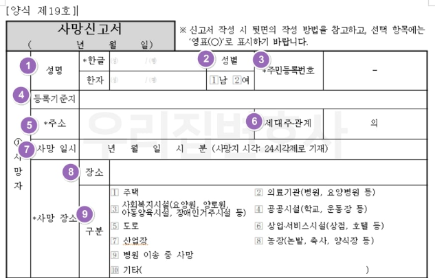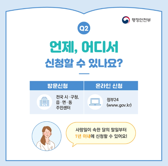 따라서 슬픔 속에서도 빠르게 신고를 진행해야 이후 절차가 원활해집니다.