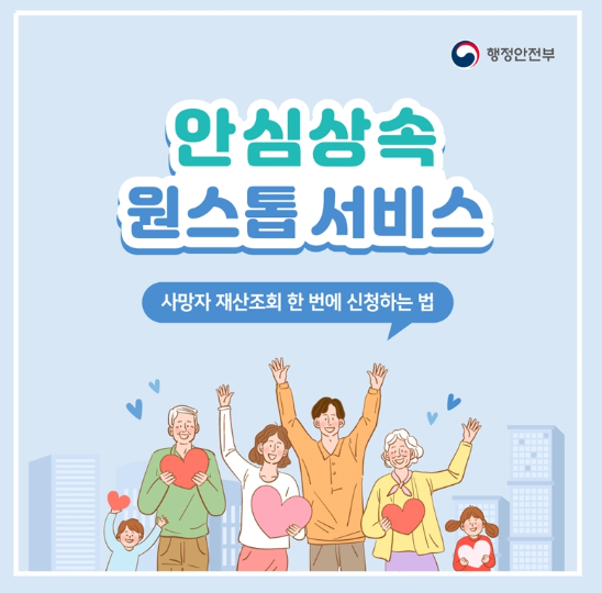 이를 위해 행정안전부에서는 안심상속 원스톱 서비스를 제공하고 있습니다.