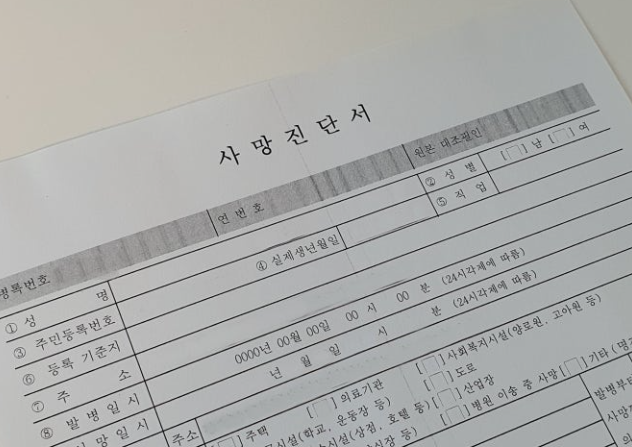 - 의료기관에서 발급받으며, 장례식장 접수에도 필요한 서류입니다.