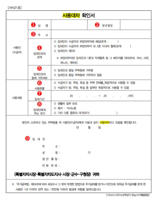 사용대차확인서 뜻, 사용대차확인서 주거급여, 사용대차확인서 기초연금, 무료임차소득 증빙