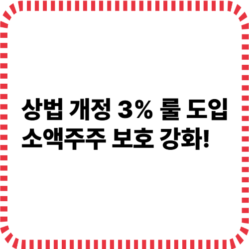 - 실무 변화: 강화된 3% 룰이 시행되면, 대주주가 지분을 쪼개 의결권 제한을 피하던 방식에 제동이 걸립니다. 이는 소액주주들이 감사 선임에 더 큰 영향을 미치게 되어, 기업들이 지배구조를 더 투명하게 개선하고 소액주주 친화적인 정책을 펼치도록 유도할 것입니다. 실제 주주총회에서는 소액주주들의 목소리가 더 커지는 사례가 나타날 것입니다.
