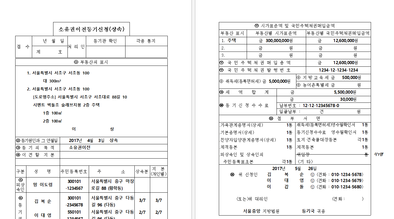 상속등기 신청서 작성 견본 (서류 다운로드)