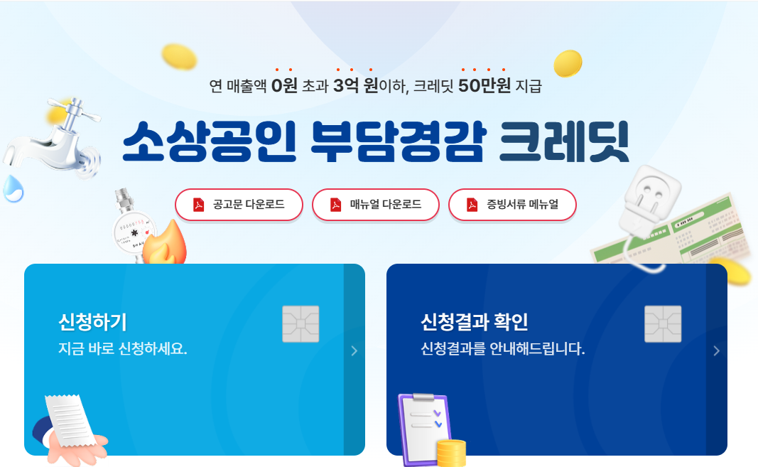 - 신청 사이트: 소상공인 부담경감 크레딧 지원시스템