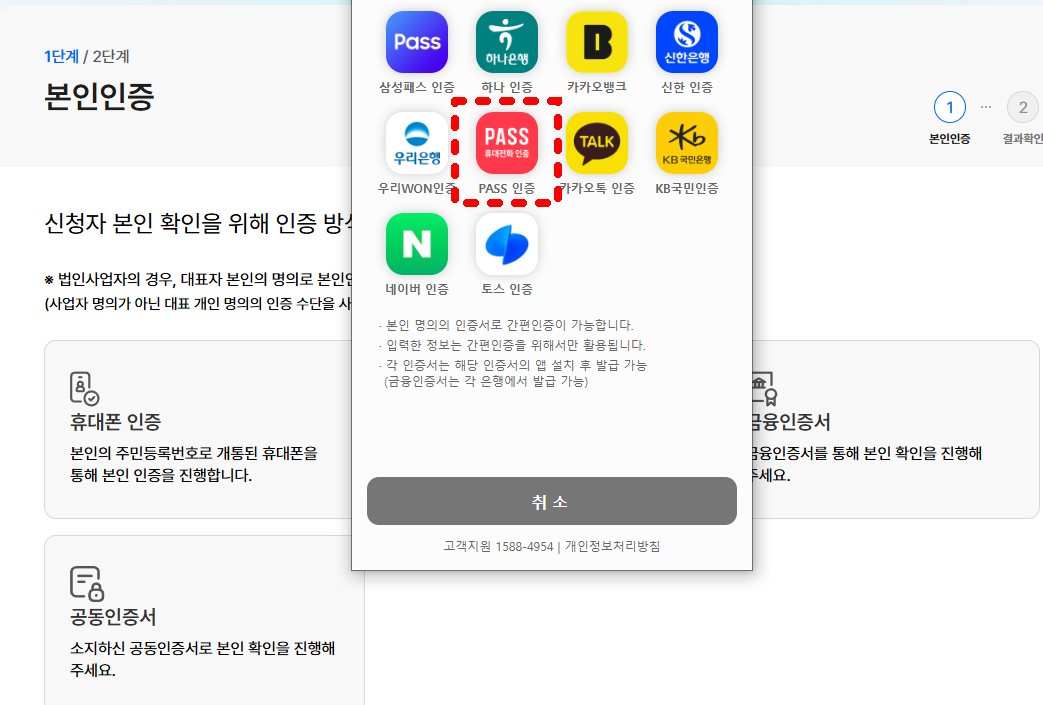 - PASS, 카카오톡, 네이버 등 간편인증 가능