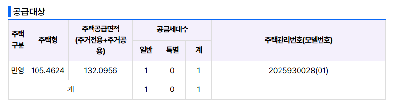 ① 공급세대수: 1세대 (105㎡ A타입)