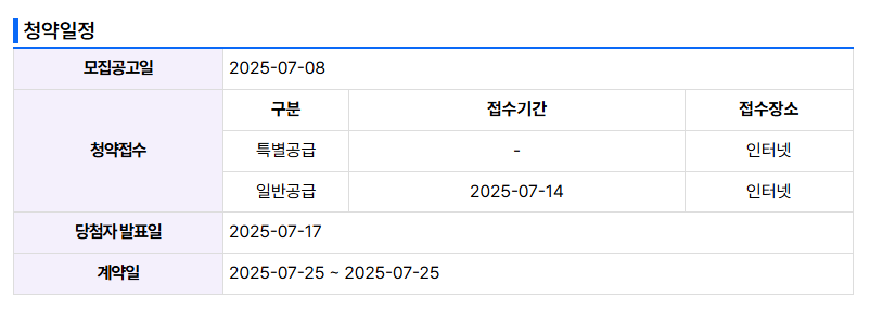 ② 청약접수일: 2025년 7월 14일(월)