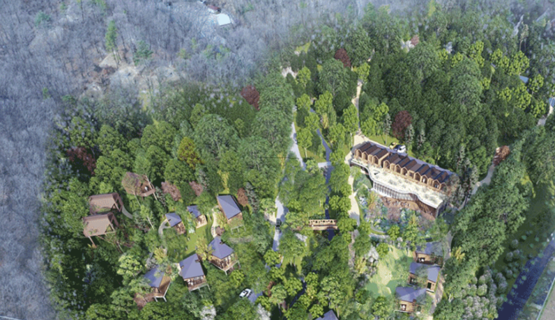 총면적 9,800m²의 부지에 트리하우스, 개별 숙소, 본동, 방문자센터, 레스토랑, 카페테리아, 해먹존, 불멍장소 등이 함께 구성되어 있어요.