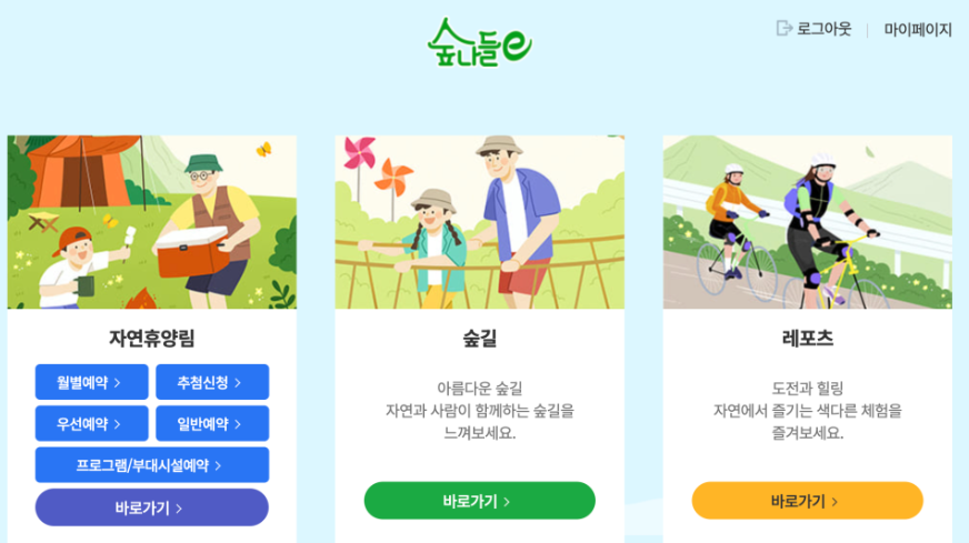 예약처: 산림청 통합예약시스템 숲나들e바로가기클릭!